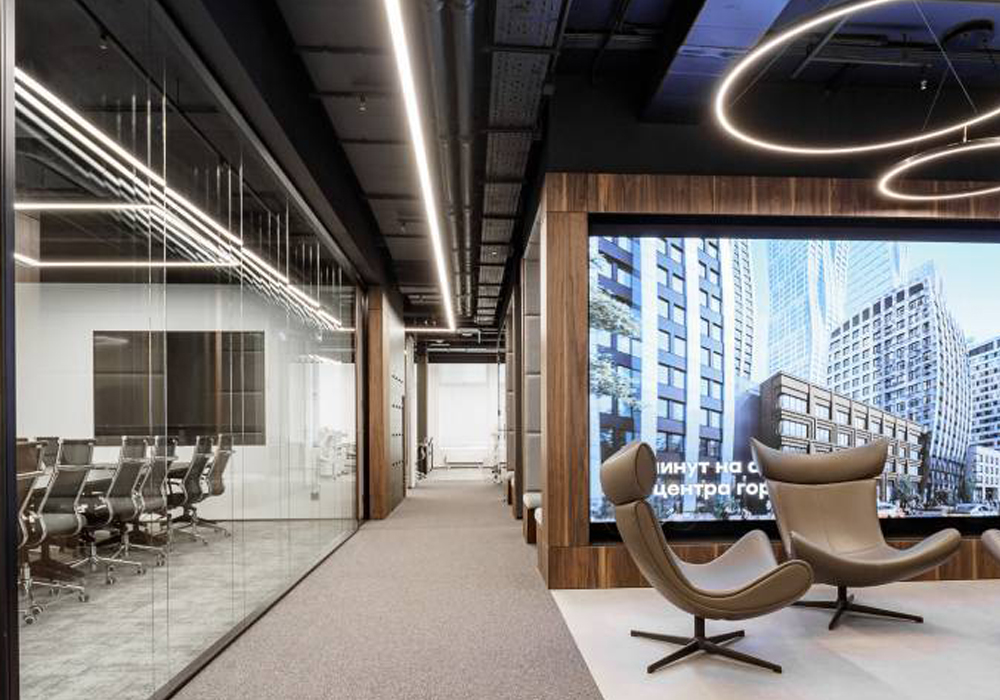 Описание проекта: Новый головной офис Level Group, одной из лидирующих компаний столичного рынка девелопмента, начал свою работу в БЦ Wall Street на Валовой улице – он расположился на 4-ом этаже бизнес-центра. Одной из особенностей проекта является высокая доля импортозамещения – 85% всех материалов и оборудования, начиная от фальшполов и заканчивая системами освещения, были произведены в Санкт-Петербурге. Оставшиеся 15% пришлись на азиатских (8%) и европейских (7%) производителей.